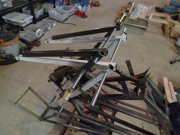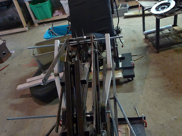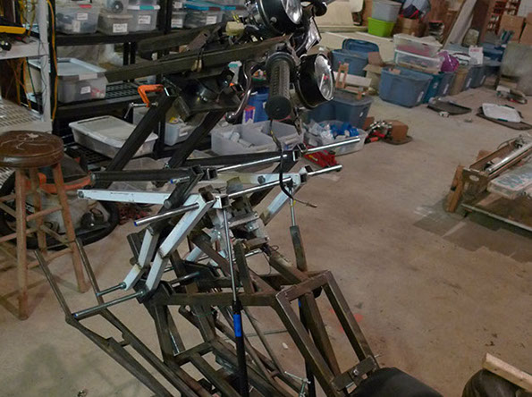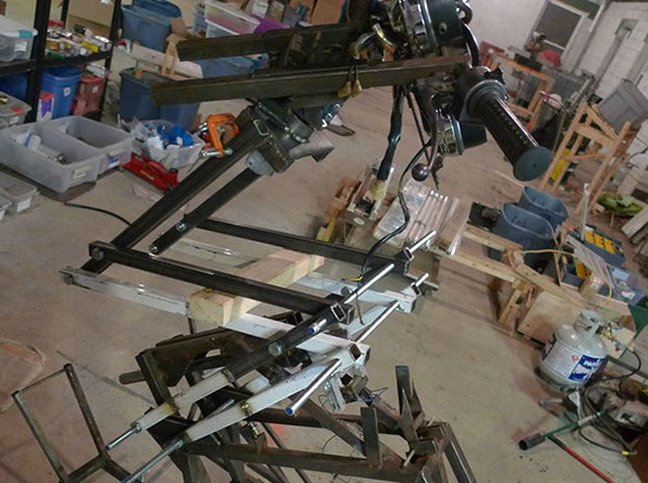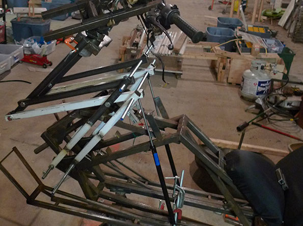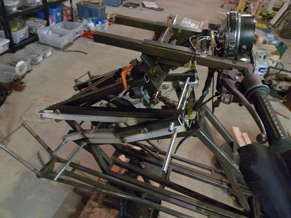Looks good though. The problem was the stiffness in the upper most pair of bars that attach to the handlebars. When you pull down, the play in the bars and holes and threaded rods conspire to not close the assembly as a set of parallel bars, instead they bump into each other and stop closing. After I weld the center tubes I expect this issue to go away.