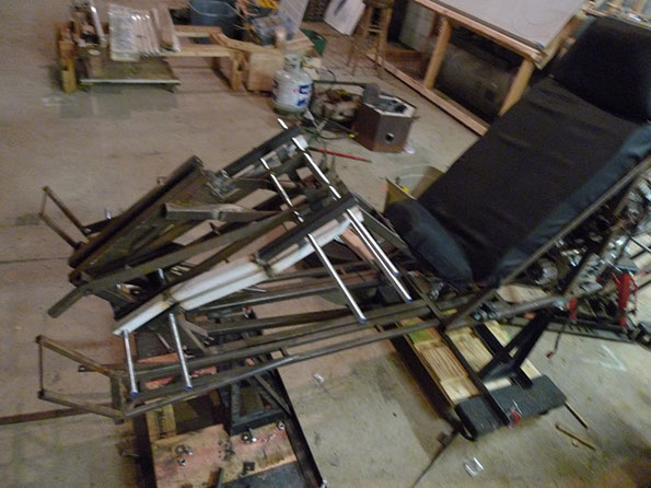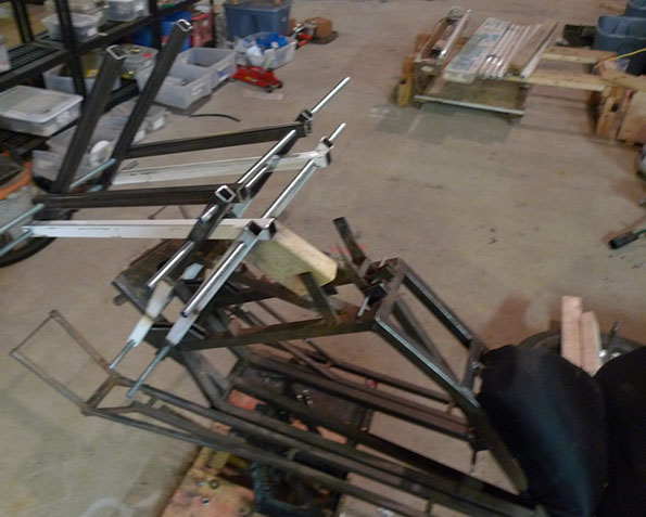 The current incarnation of the Virtual Pivot Point based Powered Egress had some issues, I decided to beef it up, upgrading from 1"x.25" steel bars to 1" square tubes. Here you can see the original design, the 5 bars on either side are 1" x 1/4". They lacked the stiffness necessary and were too narrow for the new internal locking mechanism