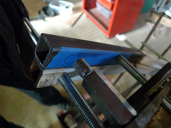 Now the hard parts, centering and lining up the holes. The first once just needs to be centered along the length of the tube.