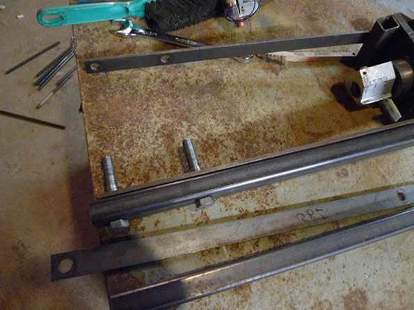 Now I could have measured them in reference to the design only to find they didn't line up, or I could try to line them up with the existing bars and fail, causing it not to work. I debated this and decided to go with matching it to the existing assembly. To help with the lining up process, I screwed a long nut onto the threaded rod and in the other end a bolt, whose head I cut off. I could press this up against the bar and trace it for a good accurate alignment.