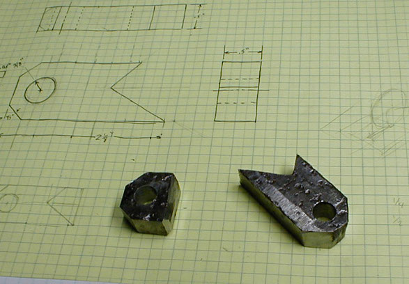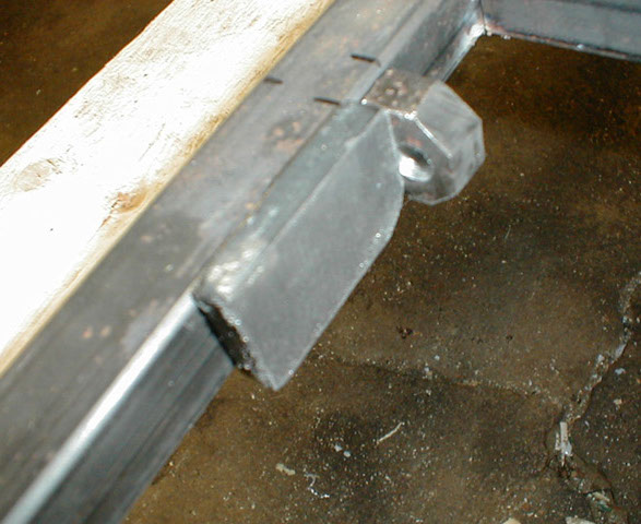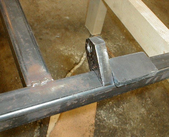 The completed lower front engine mounting brackets. These were made from .5 x 1 inch mild steel. The drilled hole is 3/8" diameter, and was quite a pain to drill with my tools.