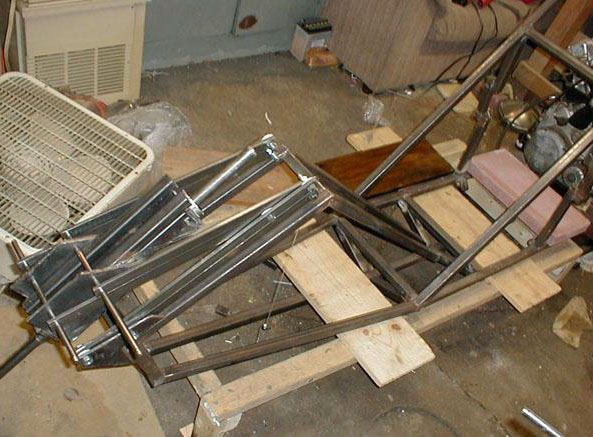 The four pieces cut and ground, and the backbone of the Steering Column Housing, now waiting for tack welding.