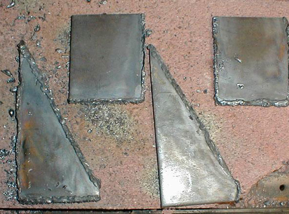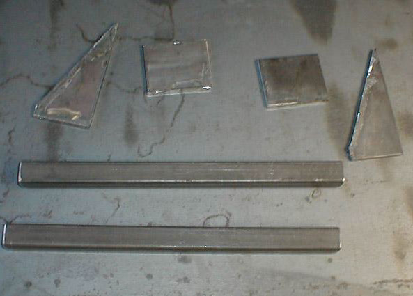 The first pieces for the bike cut with the Oxy torch. These rectangular pieces will be the ends of the steering column housing.