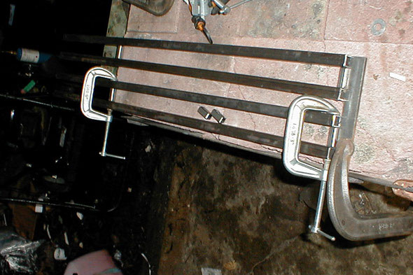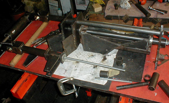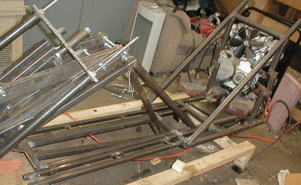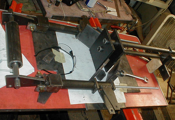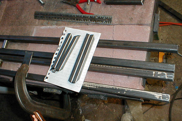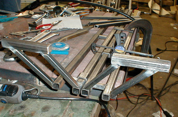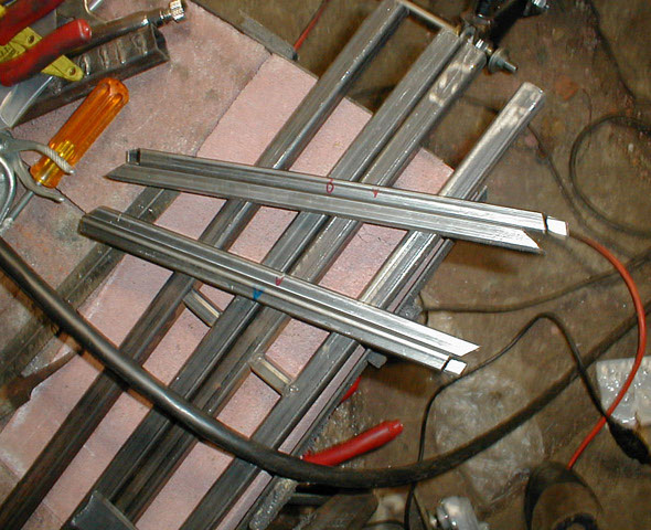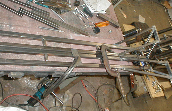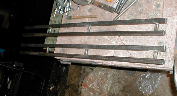 The construction of the foot rests begins. Here you see the two pairs of parallel bars, these are made of 3/4" mild steel tubing.