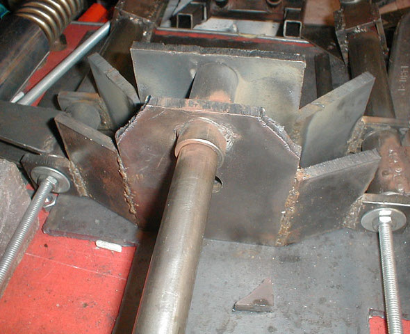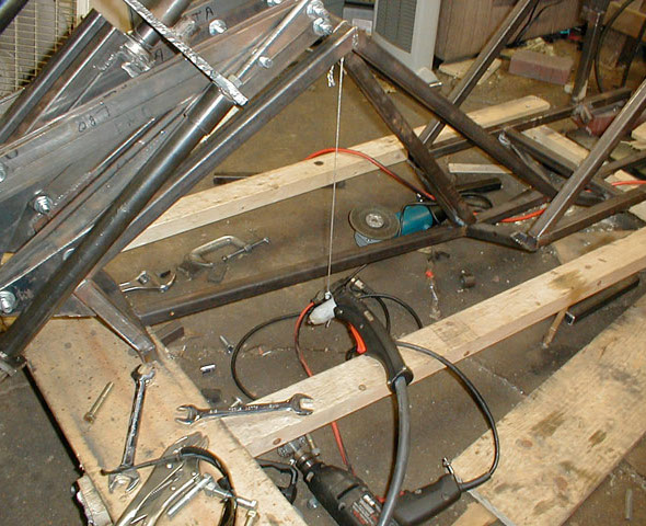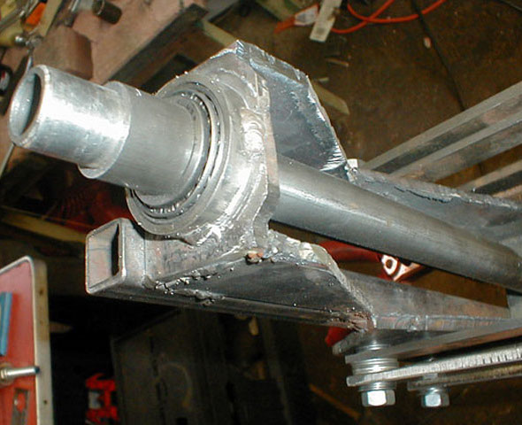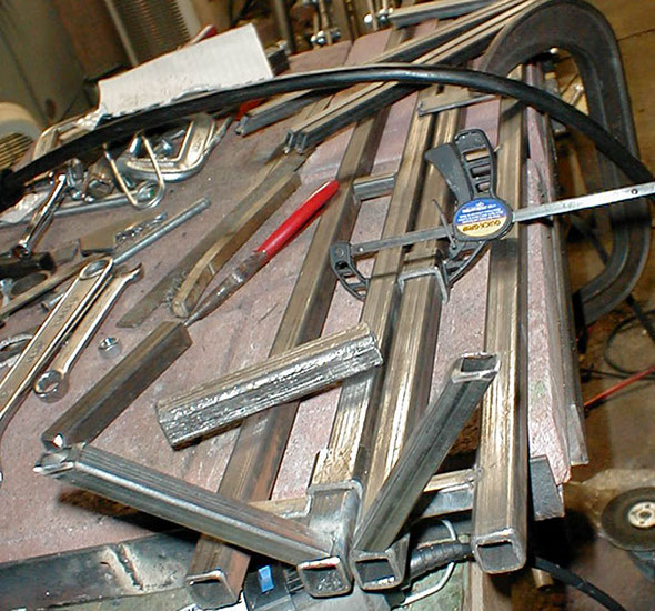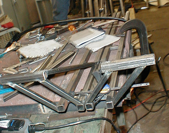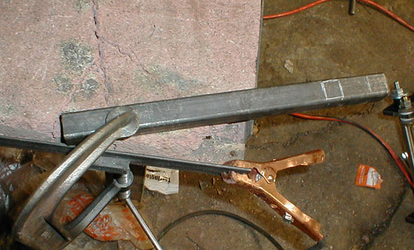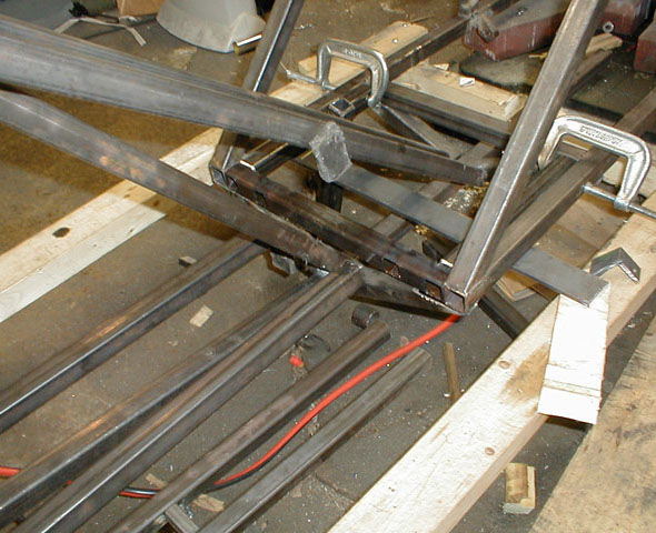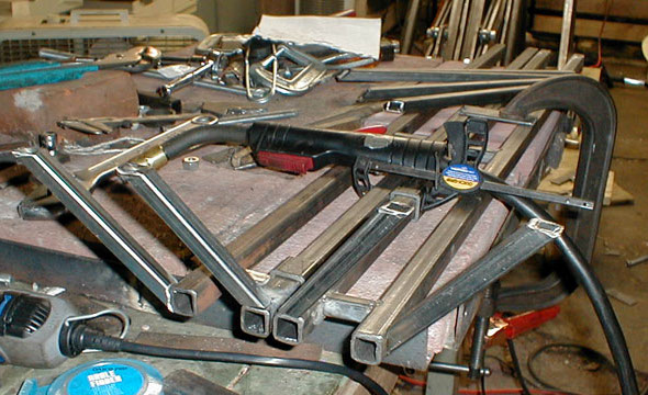 The cross members are welded in place, these are made of 1/2" mild steel square tubing.