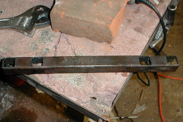Here all the cutting is complete on the new cross member to the frame.