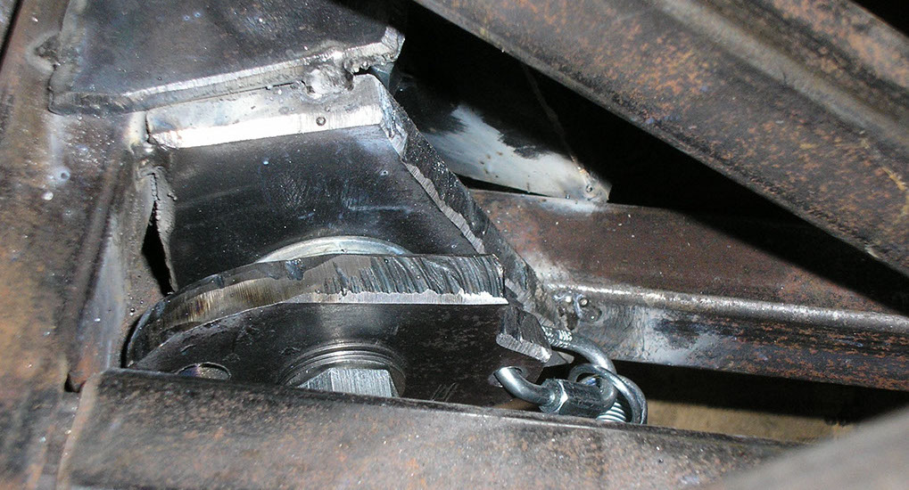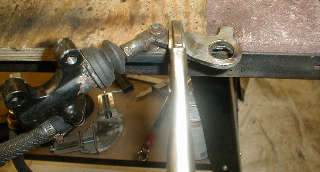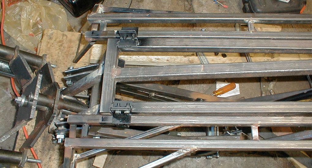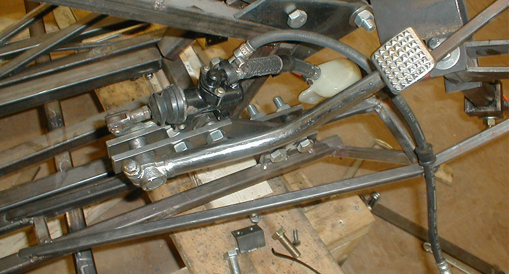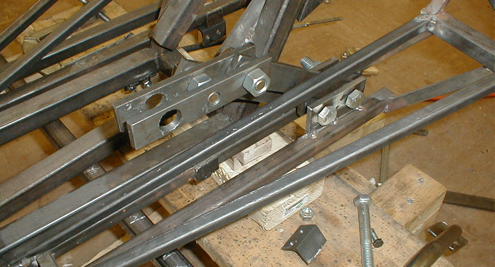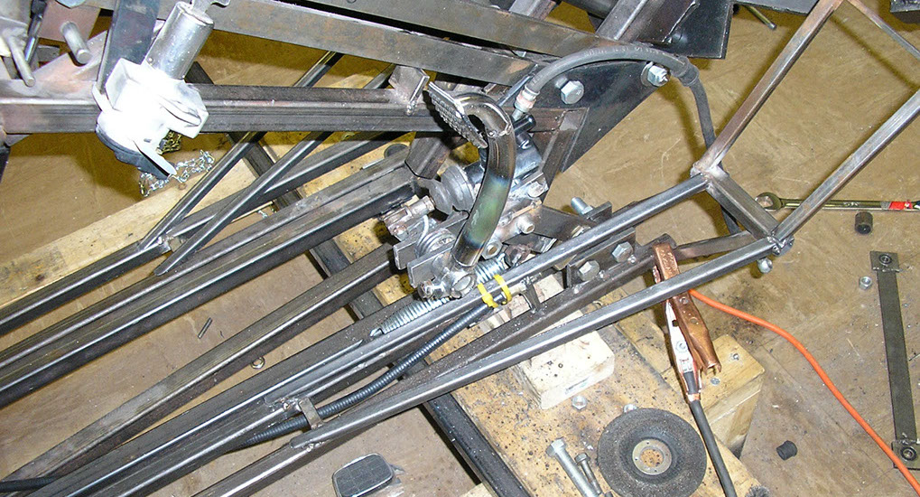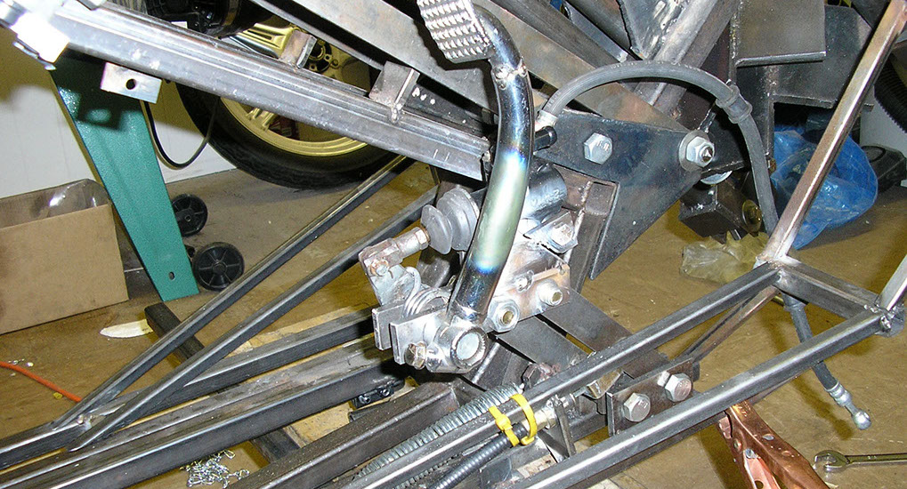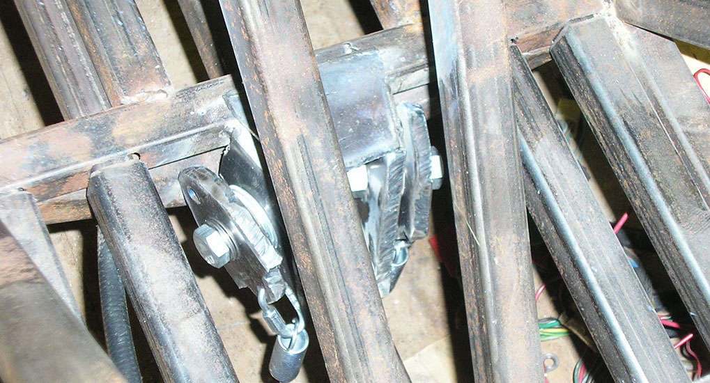 Here it is welded in place. You can now see the control cable mounted to one of the parallel bars as well.