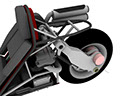 Just as in the film, the front cowling will rise up, once it rises, it will lock in that position allowing the operator to easily pull themselves up and out of the bike. With the flick of a switch, it will lower back down. This turned out to be a really great idea, making getting in and out of the bike quick and easy. Two small arms swing down from just under the rider to keep the bike upright when the vehicle has stopped.
