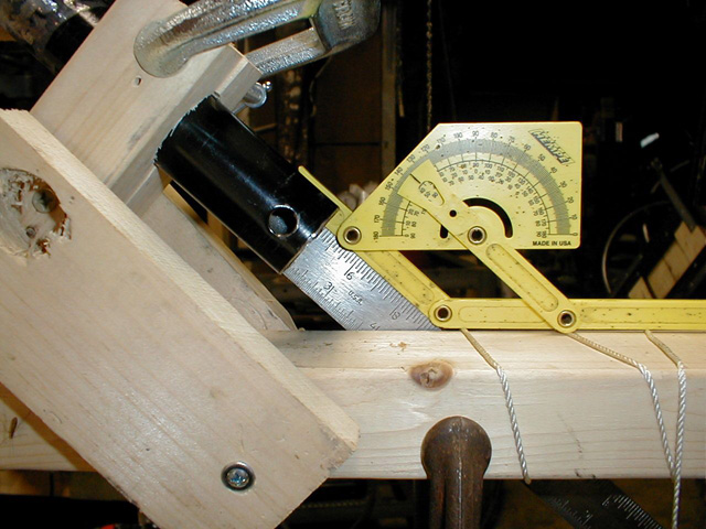The measured steering column / Handlebar angle is 43º, just as planned. (note, this is just the handlebar rotational axis angle, there will be a ujoint connecting the handlebars to the steering column, so this angle will be adjustable as well. Tilt steering!
