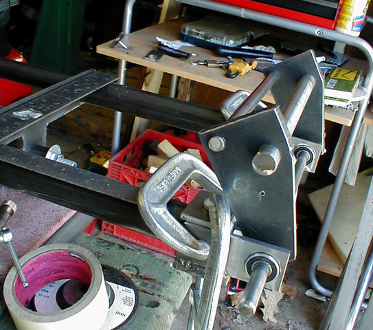 Here the suspension mounts are jigged, aligned, and ready for welding.